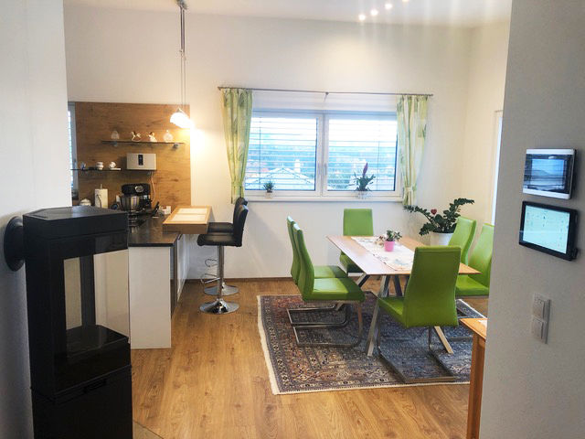 Im ersten Schritt wurden neben der gesamten Licht- und Beschattungssteuerung, die smarte Wetterstation, das Zutrittssystem (ekey Fingerprint) und vielfältige Szenen installiert (Öffnen Eingangstor bzw. Garagentor und die Bedienung der Alarmanlage).